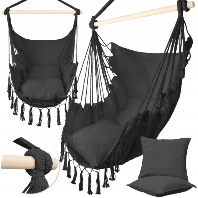 Крéсло гамак Бразильске MalTec 100см 120кг чорний (Польща)